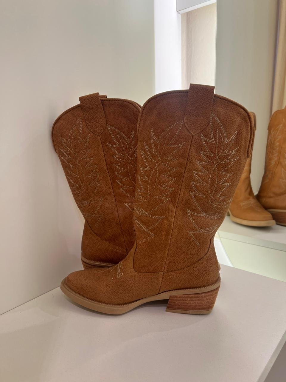 TEXANA ZUNI. CON DETALLES BORDADOS, TACO DE 5 CM, MATERIAL CUERO VACUNO.